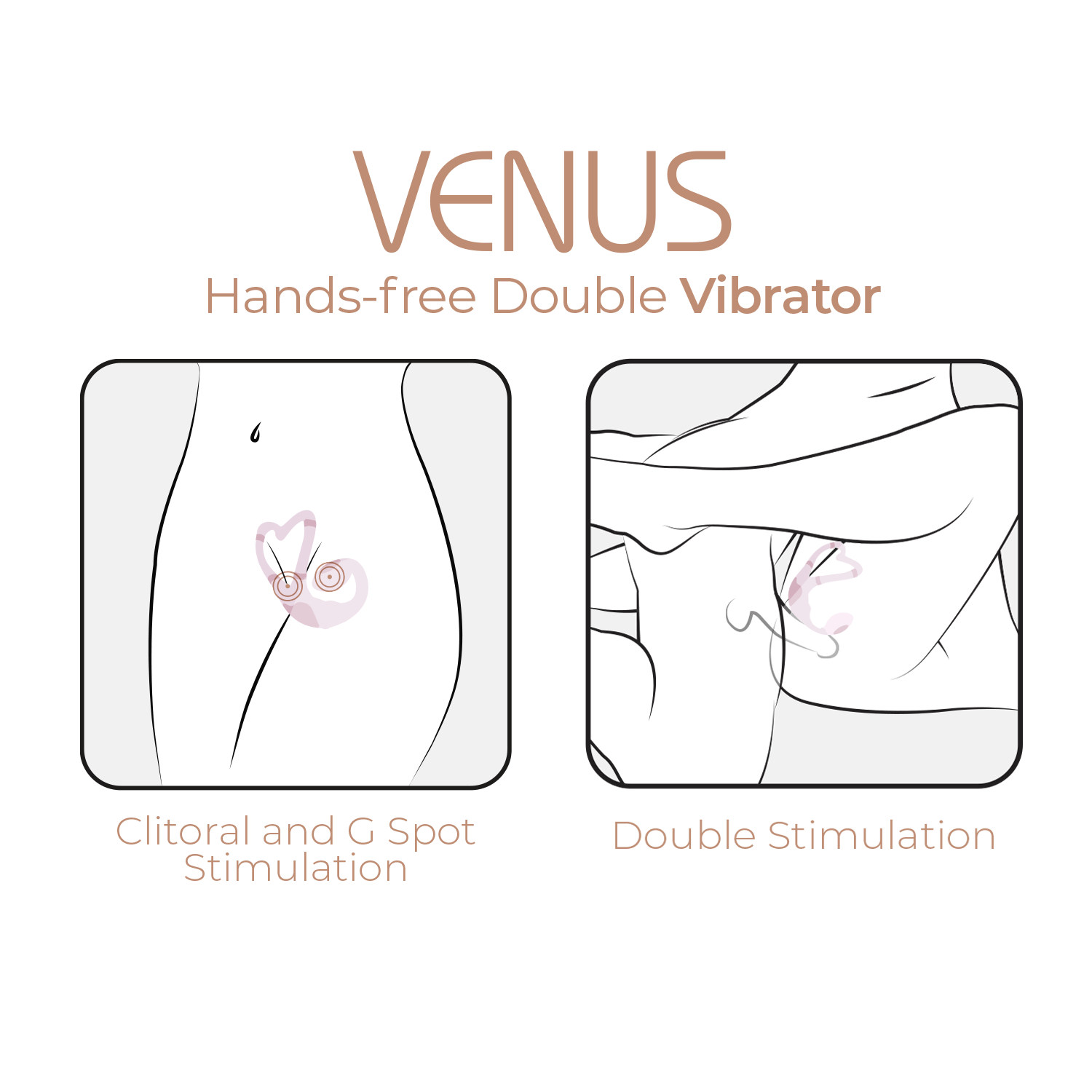 Venus is a double vibrator specifically designed to simultaneously stimulate the clitoris and the G-spot. It comes with a remote control, allowing you or someone else to operate it. The vibrator is highly versatile & portable, as it can be used during intercourse, intensifying the stimulation of all the erogenous areas of your vulva.
