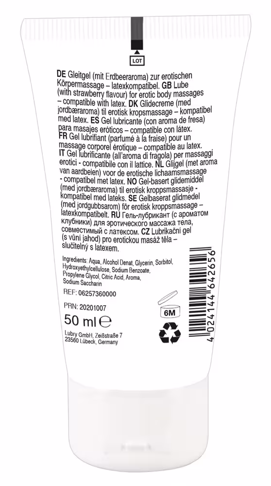Wasserbasiertes, veganes Gel Lick it! mit Erdbeerduft und -aroma zur erotischen Ganzkörpermassage. 50 ml.